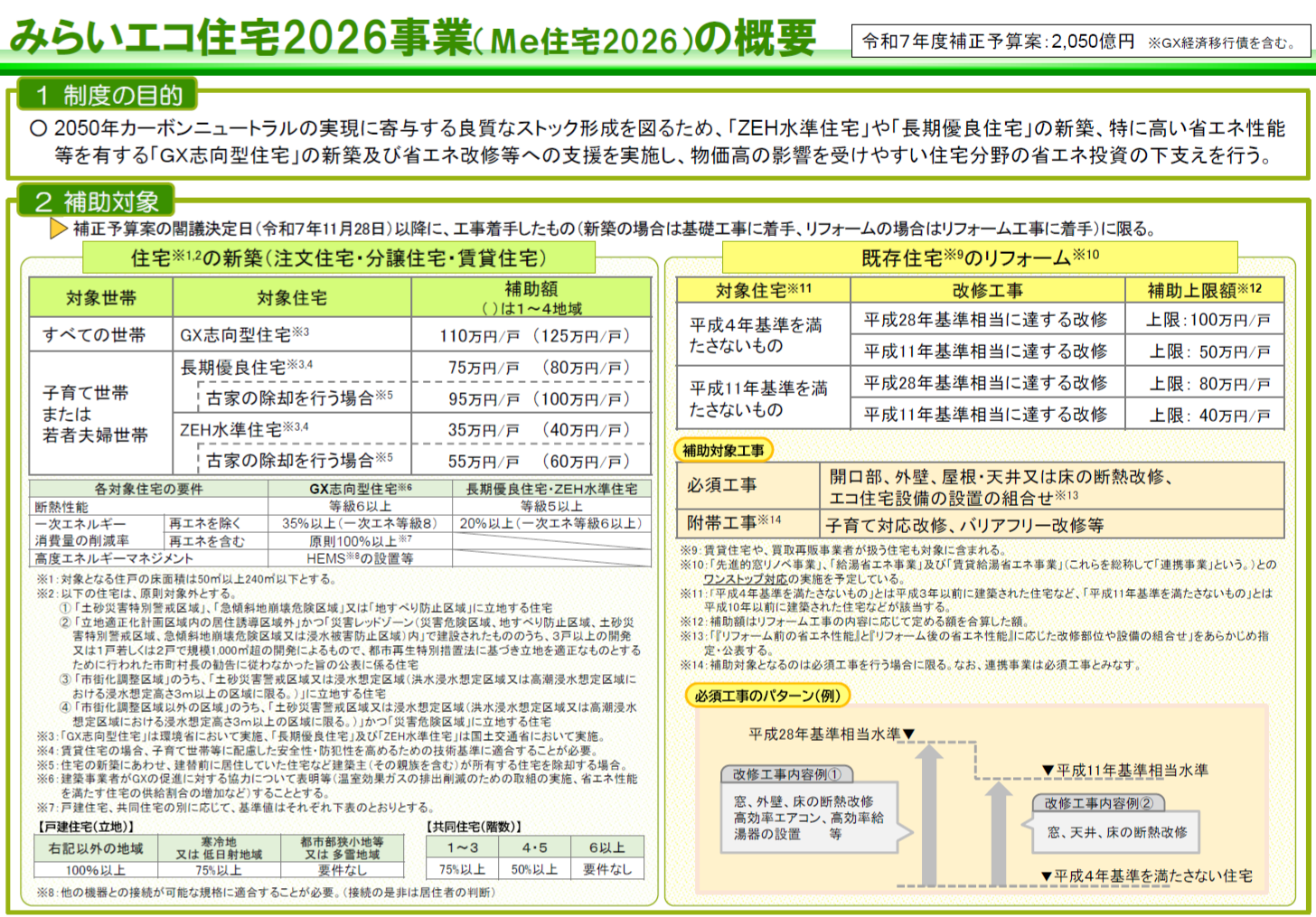 そうした環境に配慮したお家づくりをすれば、国の補助金が受けられる制度があるのをご存じでしょうか?